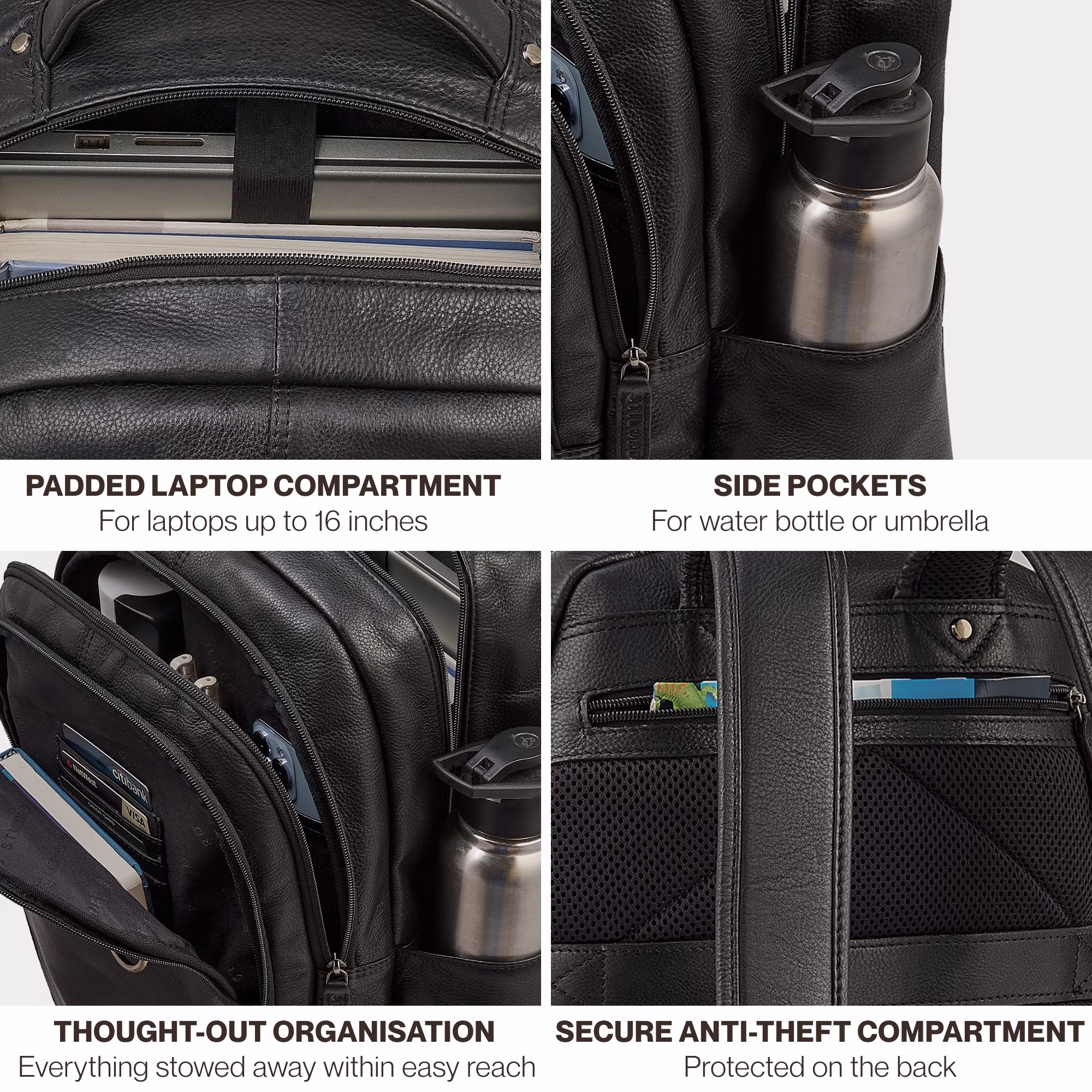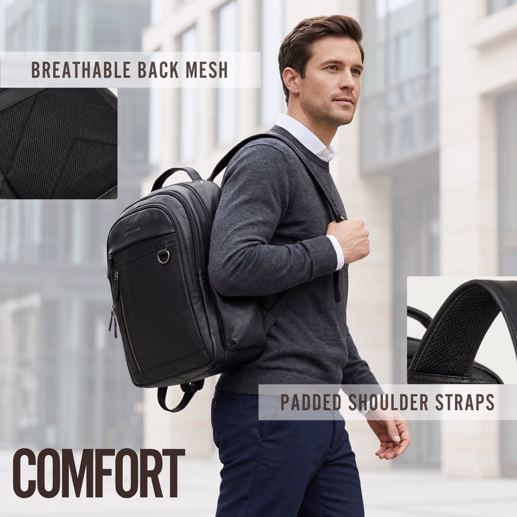 STILORD "Eron" Large Men’s Business Leather Laptop Backpack – everything at a glance