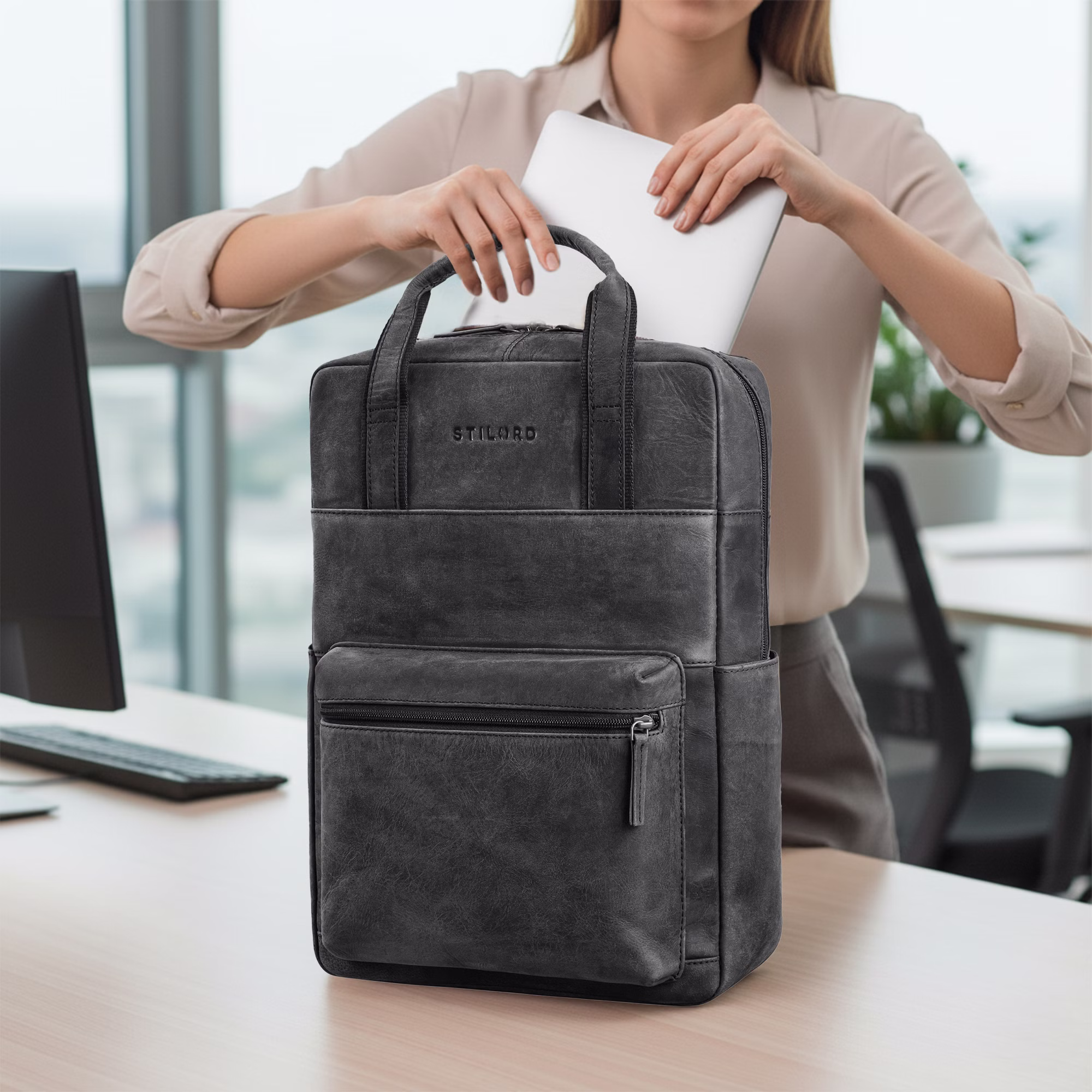 At a glance STILORD "Lilo" - leather laptop rucksack for women
