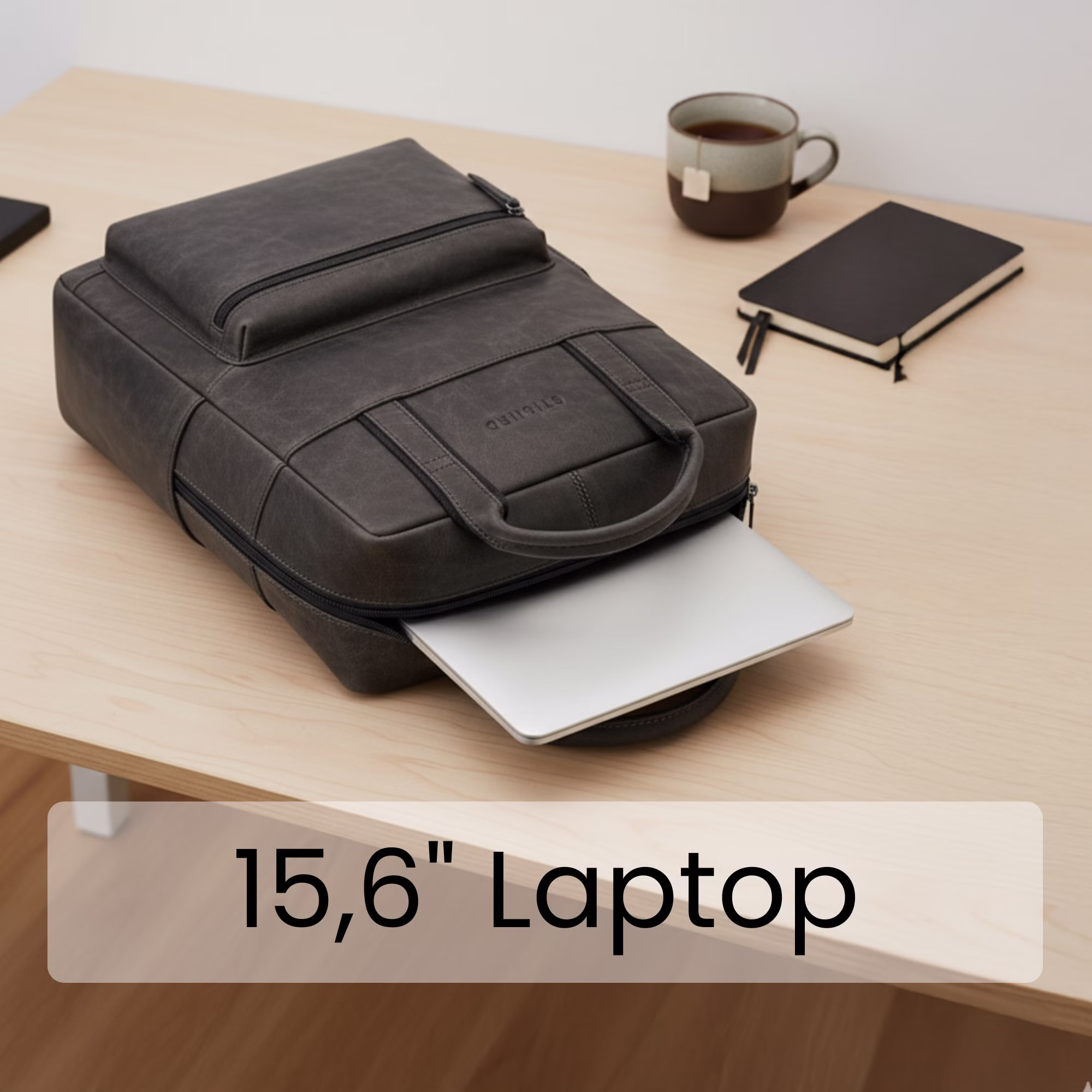 - 5.6-INCH LEATHER BACKPACK: The womens leather backpack offers plenty of space. In the padded 15.6-inch laptop compartment (26 - 35 cm), devices can be stored safely, while the main compartment offers room for 1L bottles, books, or an A4 folder.