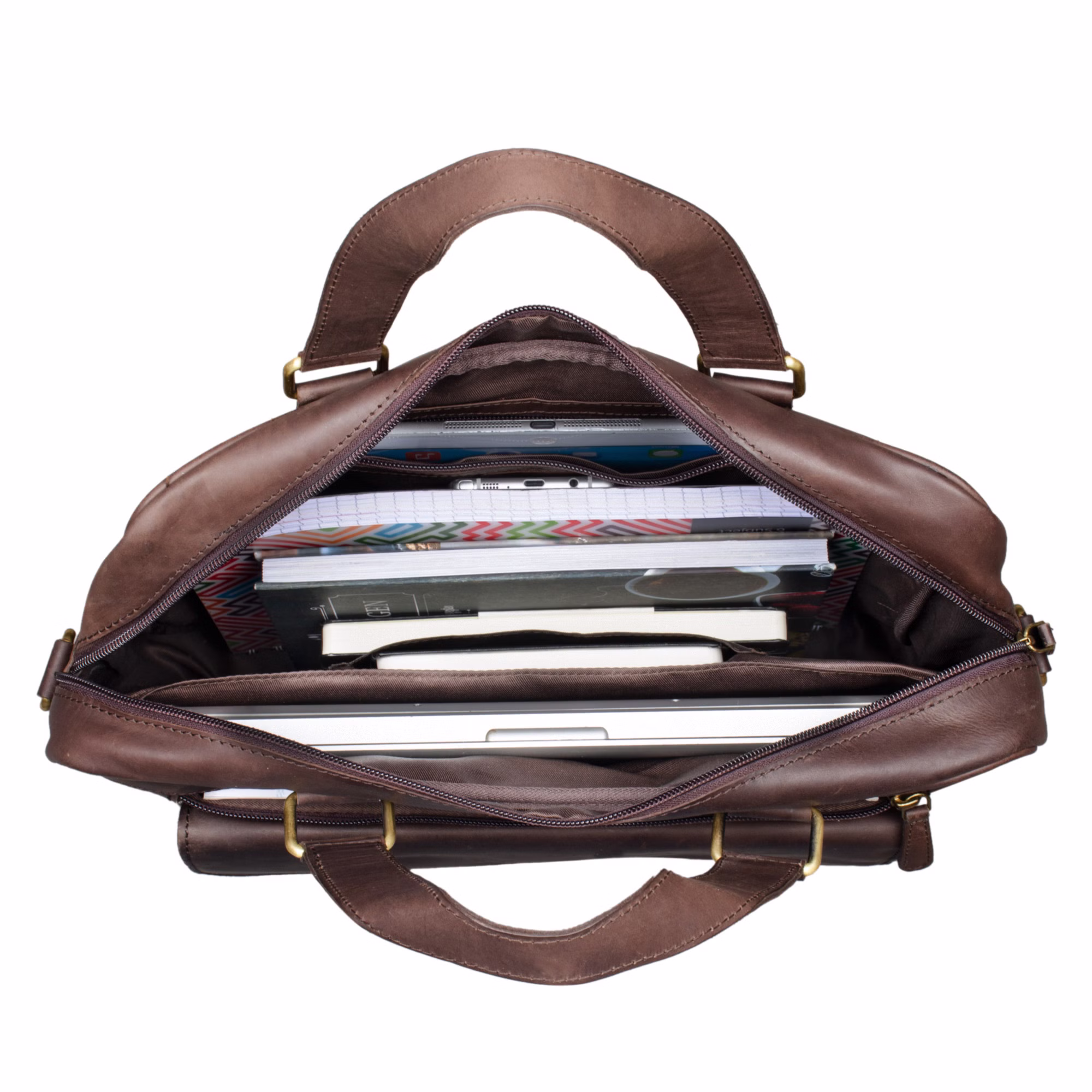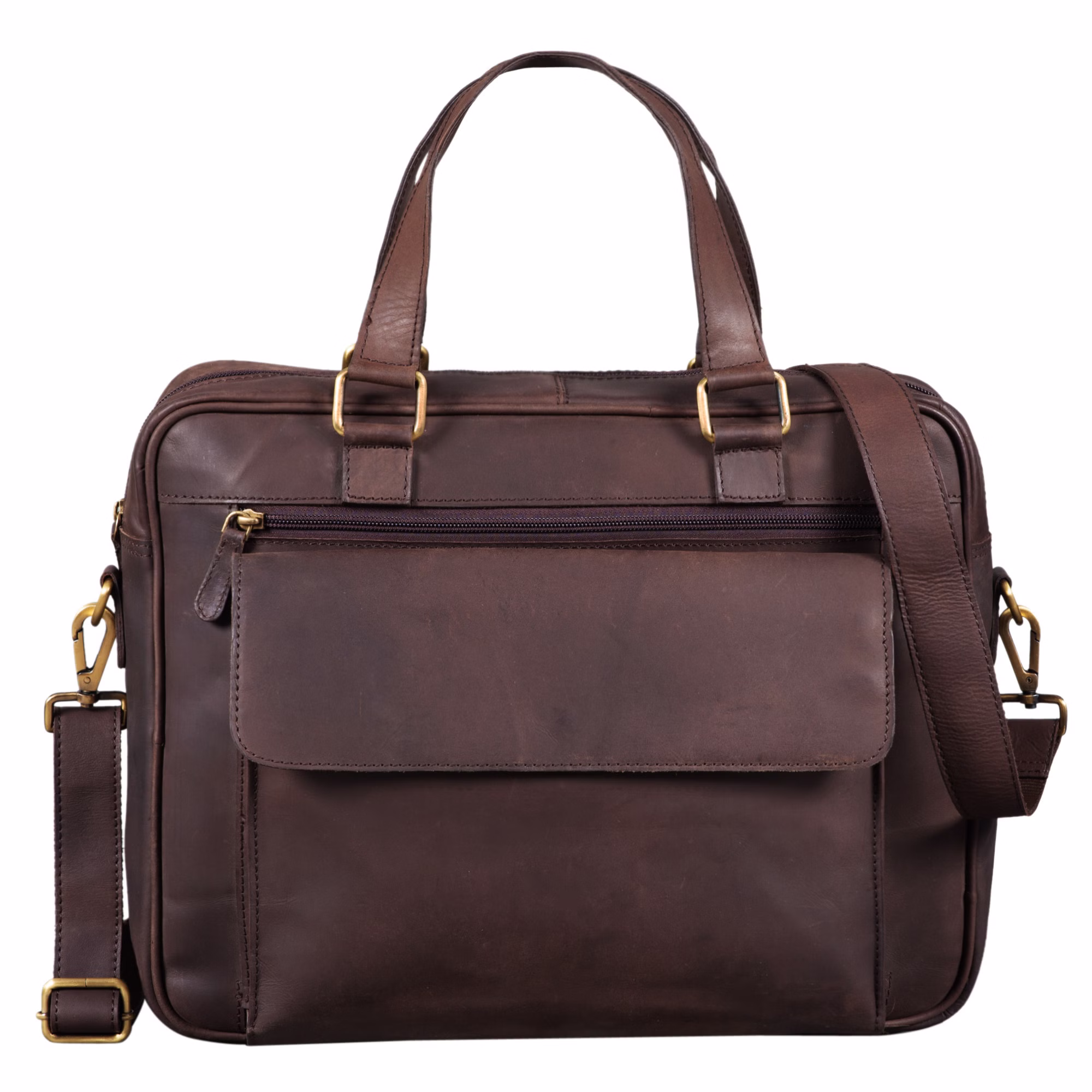 For meetings or for dinner - our vintage business bag "Florence" is the modern business companion. The leather briefcase also impresses with its inner values: the "heart" the bag is the large main compartment, where you can store A4 files and notebooks up to 14 inches. The front flap pocket is ideal for storing personal organizers, notebooks and other small items in a space-saving way.