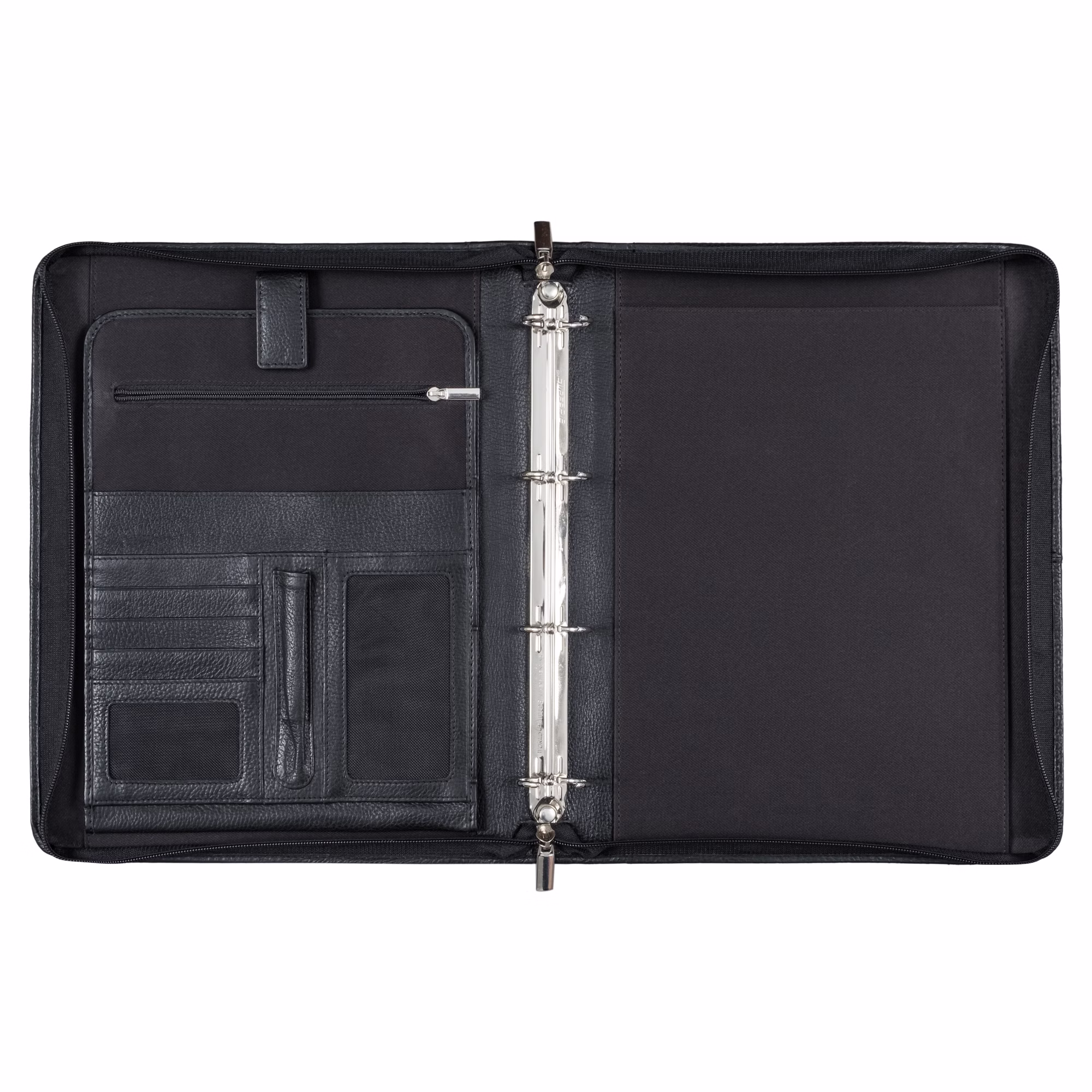 - Layout: 1x Ring holder with 4 rings | 1x Tablet compartment (unpadded) | 4x Slip pocket | 1x Zipper pocket | 5x Card slots, two with mesh design | 1x Pen holder.