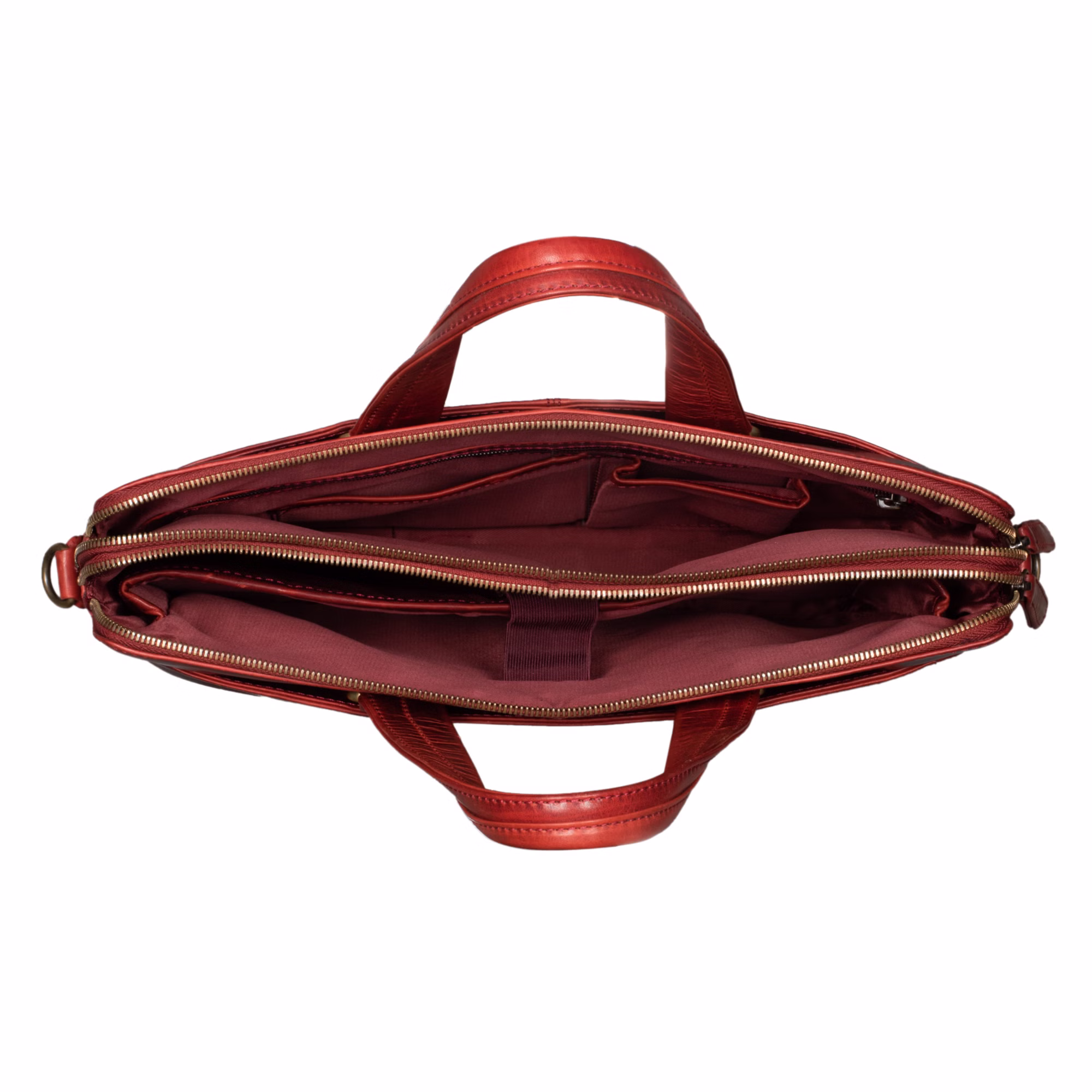 Srdcem kožené tašky jsou dvě velké hlavní komory s přihrádkou na notebook. Díky tomu si do nich můžete mimořádně šikovně uspořádat 13,3palcový MacBook, pracovní dokumenty formátu A4, chytrý telefon a peněženku. Díky příjemnému pohodlí při nošení je tato dámská aktovka také skutečným zasvěceným tipem na služební cesty a jednání se zákazníky.
