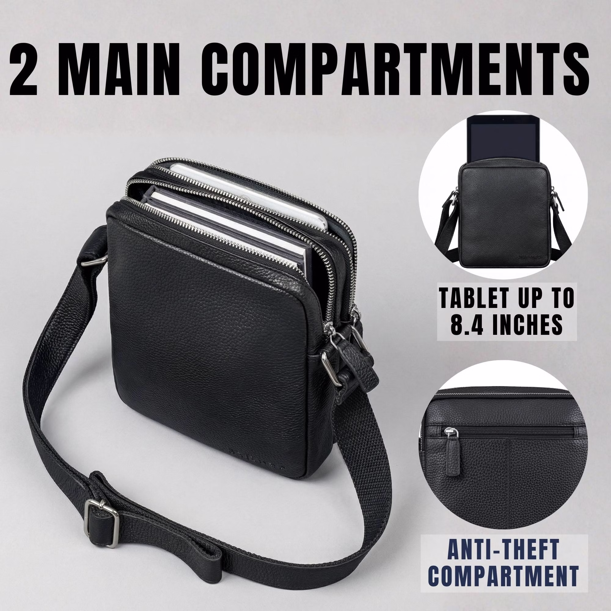 - Stor kapacitet: Tablet / iPad 11 tommer (20 x 25 cm, upolstret), mobiltelefon, nøgler, pung, DIN A5-notesbog, bog