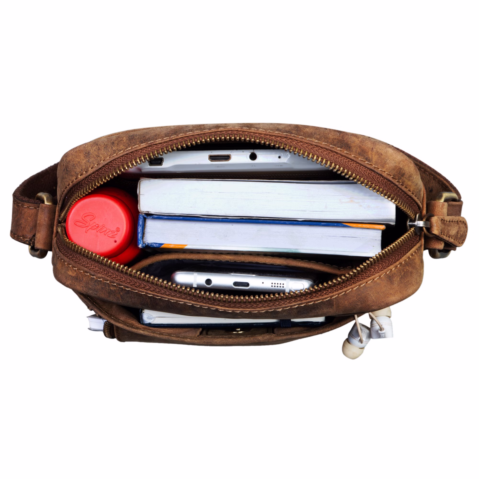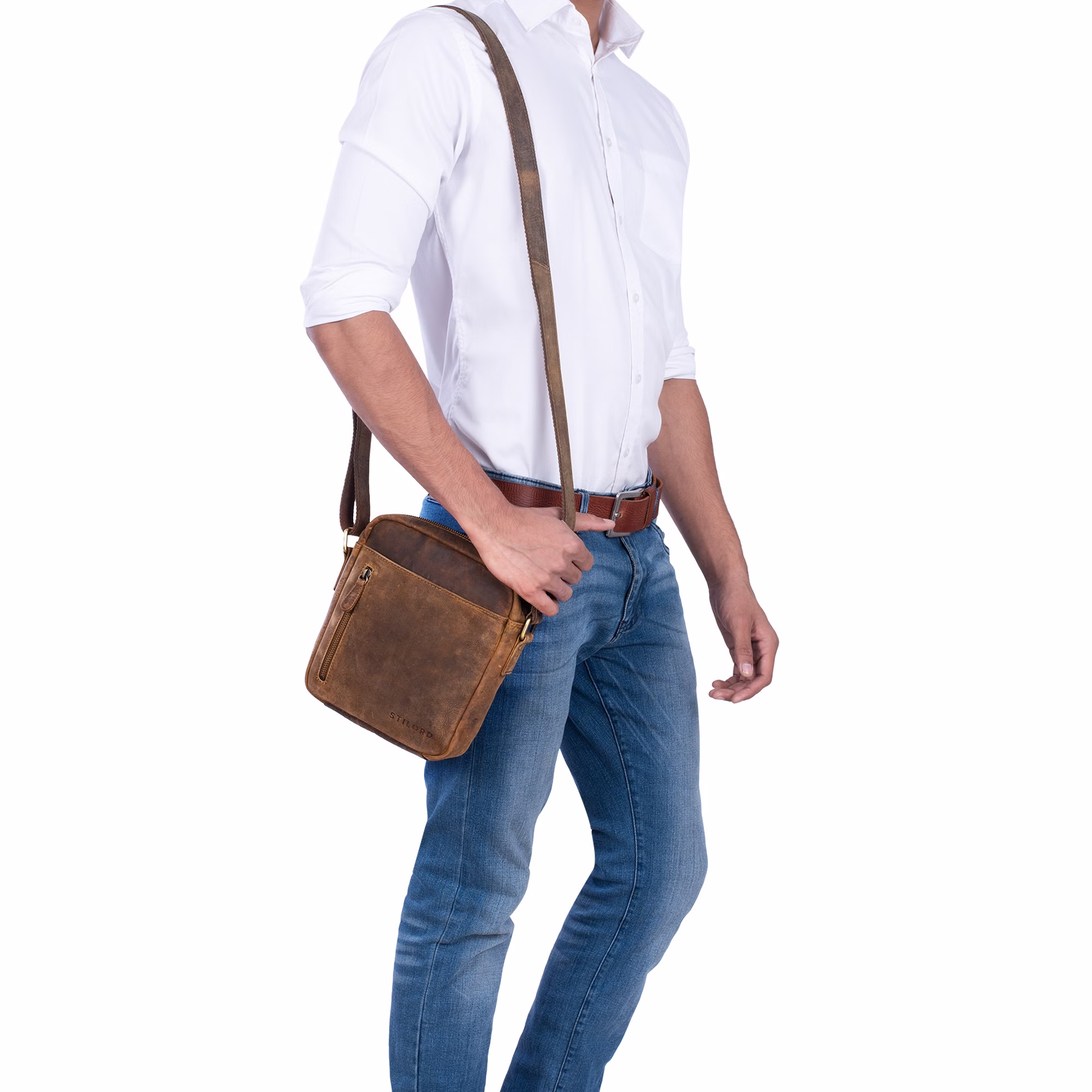 "Kennedy" Lille Skuldertaske i Ægte Læder Vintage Messenger Taske