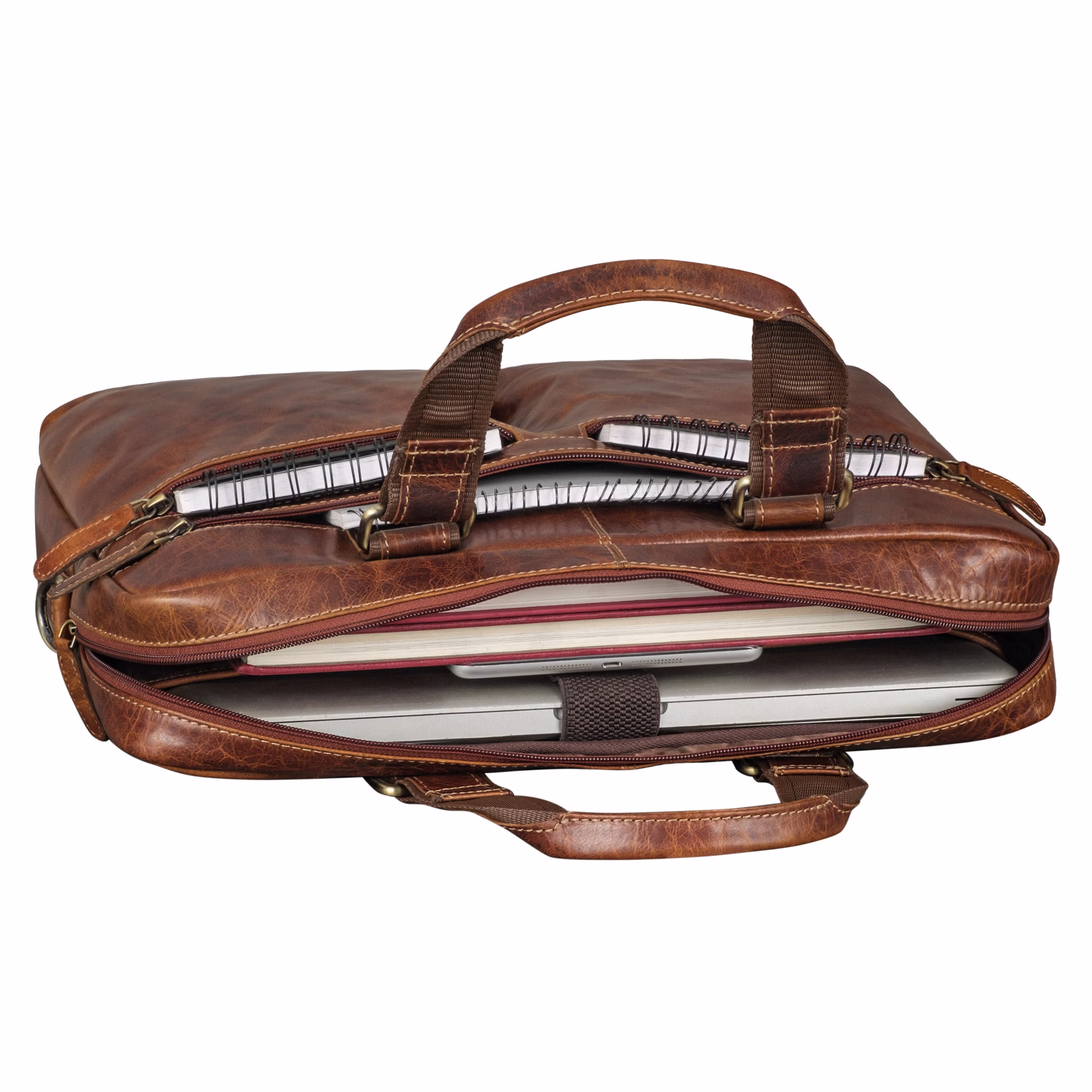 "Eugen" Leather Briefcase Shoulder Bag with 15.6 inch Laptop Compartment