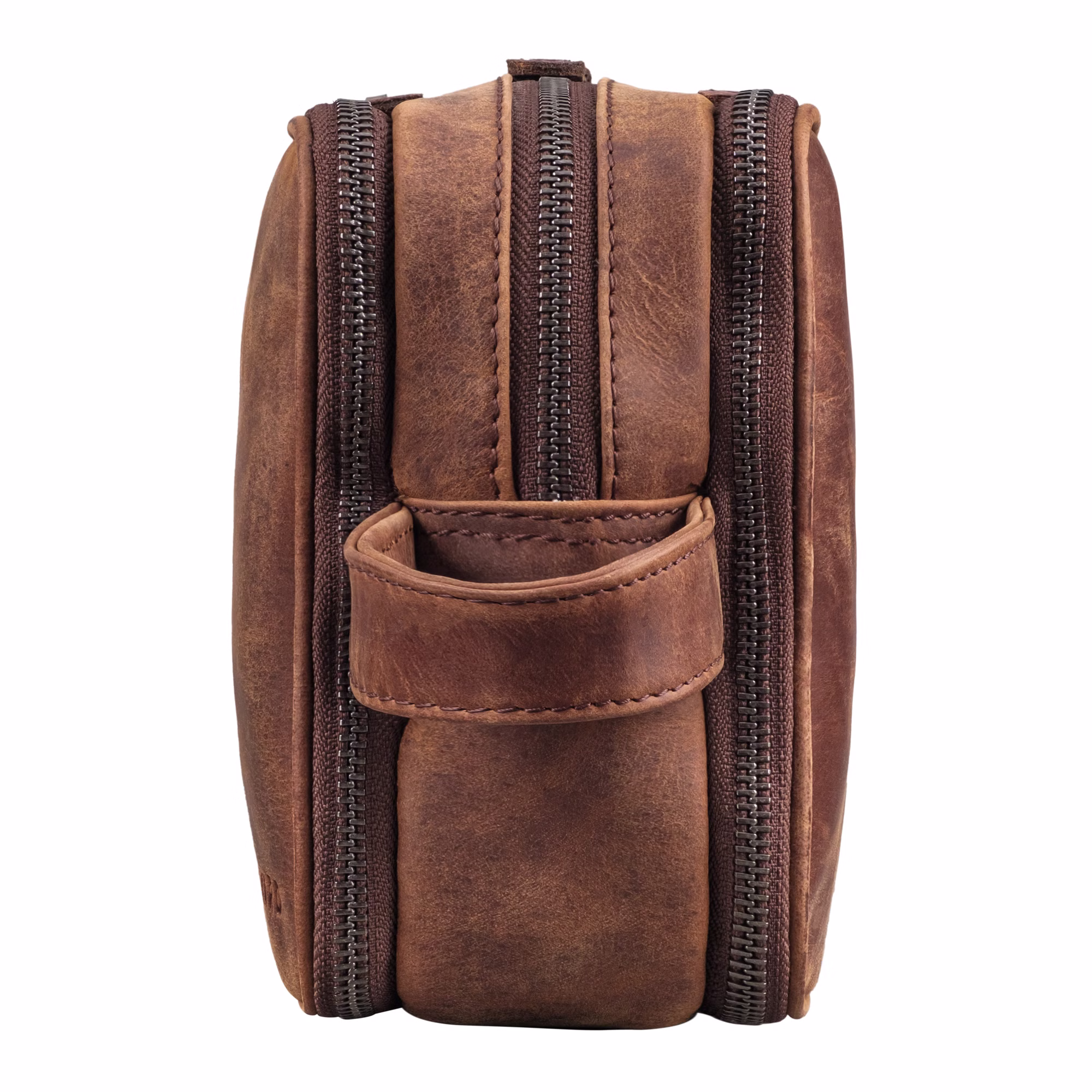 - De toilettas van natuurlijk, echt leer overtuigt met individuele kleurnuances en een natuurlijke structuur voor een unieke uitstraling!
