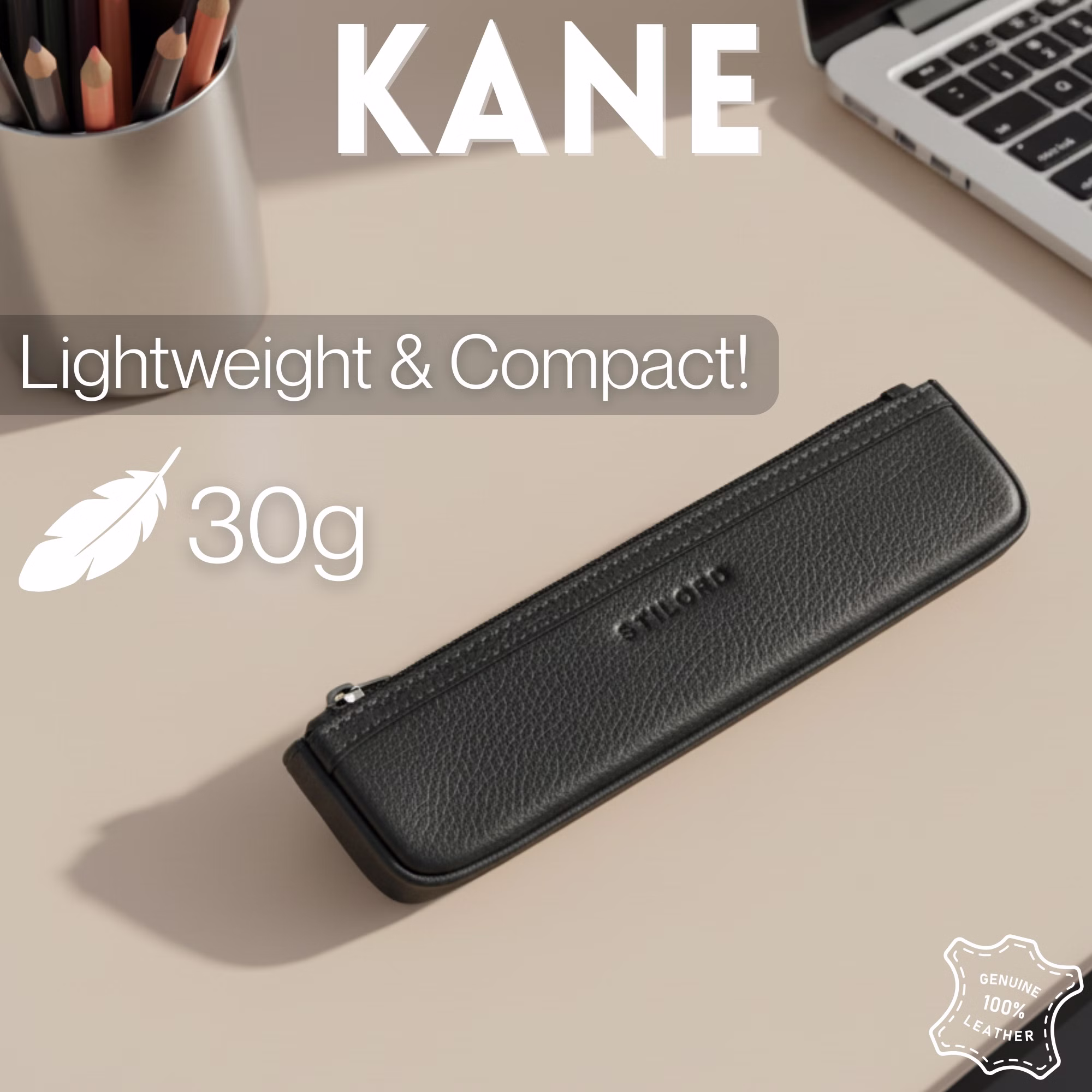 "Kane" Smalle Pennenetui van Leer met Ritssluiting voor Kantoor, School en Universiteit