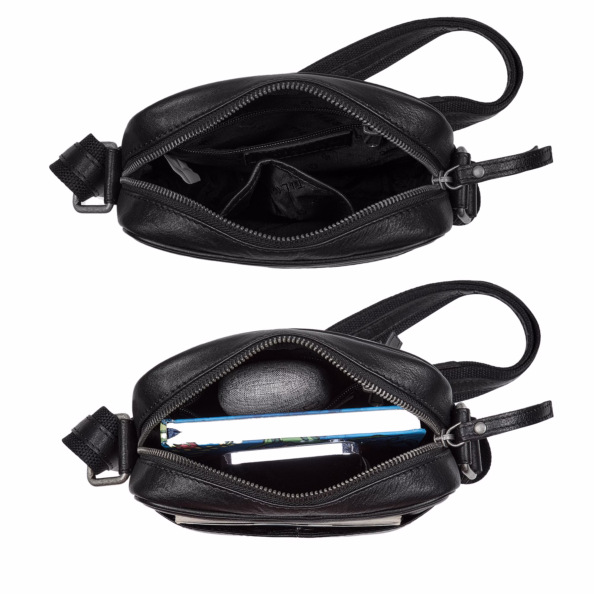 - SLIM GEORGANISEERD: De kleine leren herentas biedt een hoofdvak, twee binnenvakken, een voorvak met magneetsluiting en een achtervak met anti-diefstalfunctie voor perfecte orde. Als kleine herenschoudertas is hij dankzij robuuste ritsen altijd gemakkelijk te openen en te sluiten.